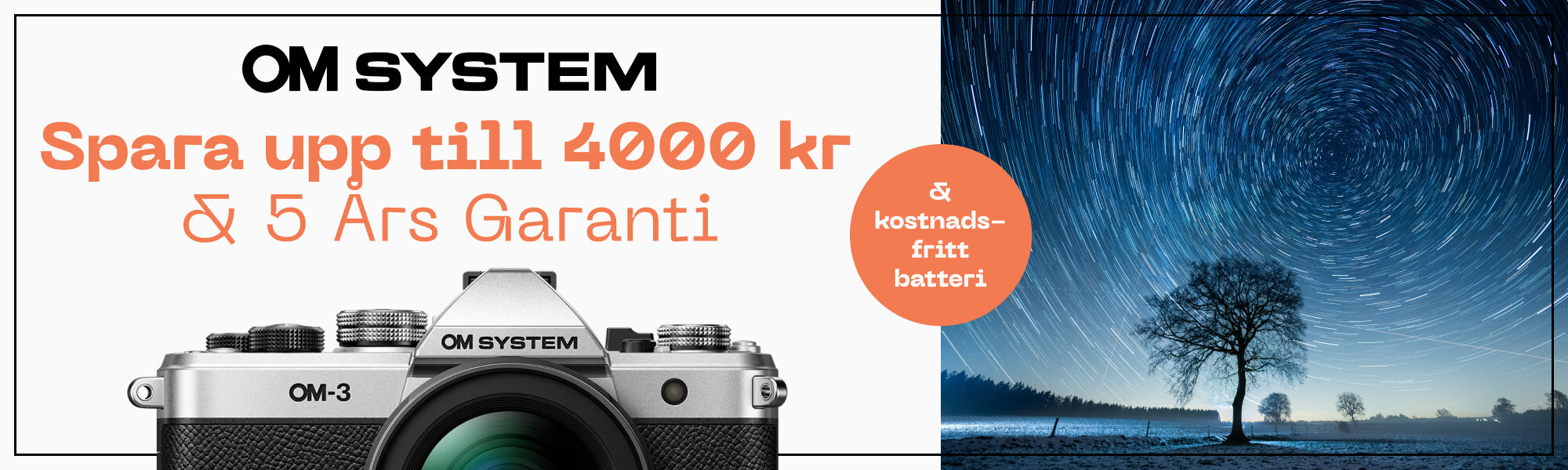 Få upp till 4000kr i cashback när du köper utvalda produkter från OM System. Gäller t.o.m. 2026-02-15.