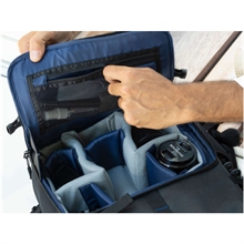 Hjärtat i Olympus Everyday Camera Backpack är det löstagbara huvudkamerafacket nedtill med justerbara avdelare med kardborreband som låter dig anpassa det tillgängliga utrymmet så att det passar ett kompakt systemkamerahus och minst fem objektiv. Upptill finns det gott om plats kvar till andra fototillbehör och privata ägodelar. Eftersom kamerafacket inte är fastsytt är det enkelt att ta ur ryggsäcken när du behöver utnyttja allt utrymme för att få plats med andra saker. Ovanpå den mångsidiga ryggsäcken finns ett laptopfack med dragkedja och extra vaddering bak, plus flexibla fickor för vattenflaskor eller liknande och justerbara remmar som låter dig fästa t.ex. stativ på båda sidorna utanpå. Viklocket ovanpå och locket med dragkedja fram ger dig snabbt tillgång till innehållet. Dessutom finns det fickor för minneskort, dokument eller andra tillbehör på insidan av dragkedjelocket. Det ramlar inte rakt ned utan viks ut så att inga produkter ramlar ur när man öppnar det. De justerbara höft- och bröstremmarna samt väl vadderade axelremmarna gör den mycket bekväm.